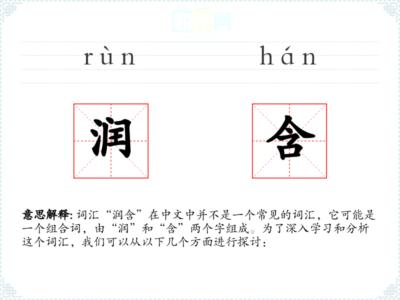 词汇“润含”在中文中并不是一个常见的词汇,它可能是一个组合词,由“润”和“含”两个字组成。为了深入学习和分析这个词汇,我们可以从以下几个方面进行探讨:
