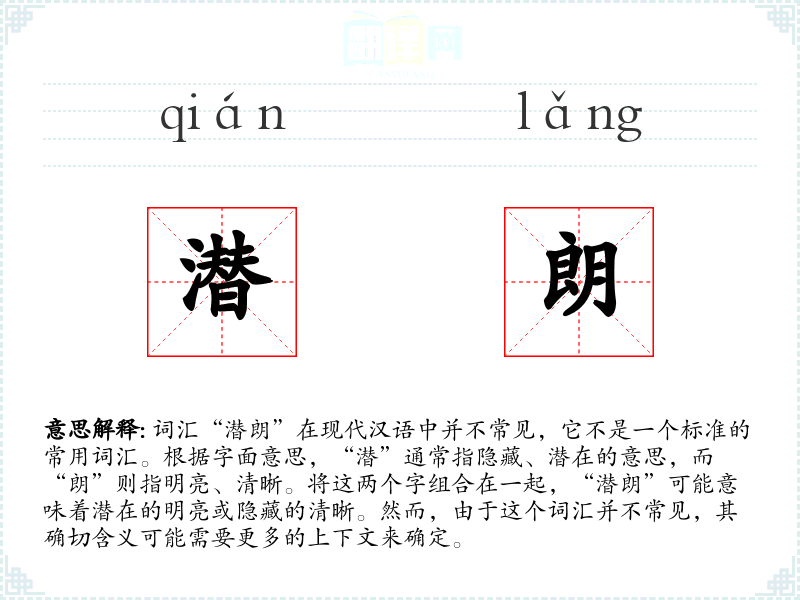 "潜朗"的意思解释、潜朗是什么意思由翻译网汉语词典查词提供。
