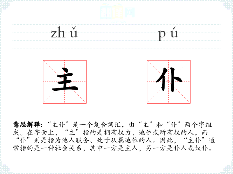 在专业领域,如历史学或社会学,“主仆”关系是研究封建社会结构和劳动分工的重要概念。