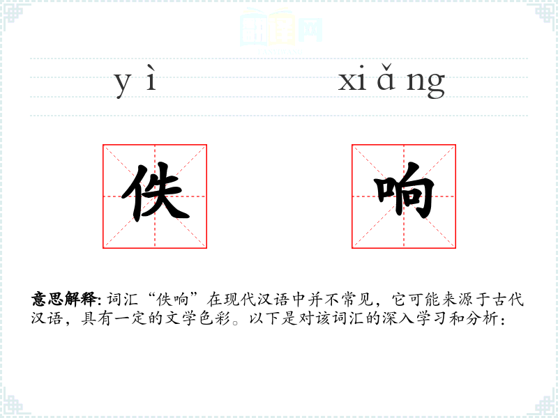 词汇“佚响”在现代汉语中并不常见,它可能来源于古代汉语,具有一定的文学色彩。以下是对该词汇的深入学*和分析: