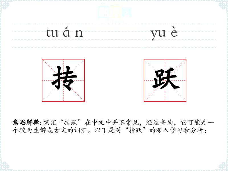 词汇“抟跃”在中文中并不常见,经过查询,它可能是一个较为生僻或古文的词汇。以下是对“抟跃”的深入学习和分析: