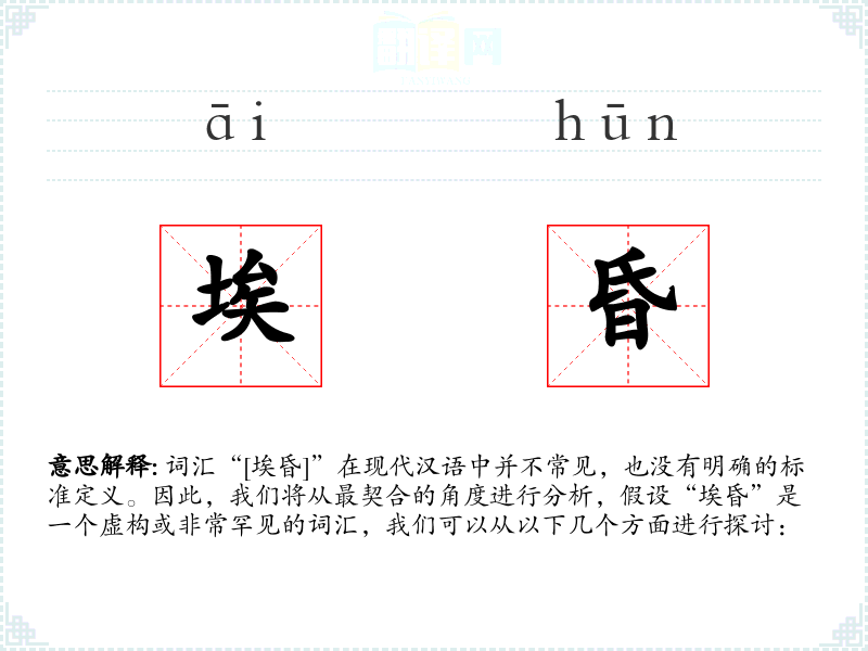 词汇“[埃昏]”在现代汉语中并不常见,也没有明确的标准定义。因此,我们将从最契合的角度进行分析,假设“埃昏”是一个虚构或非常罕见的词汇,我们可以从以下几个方面进行探讨: