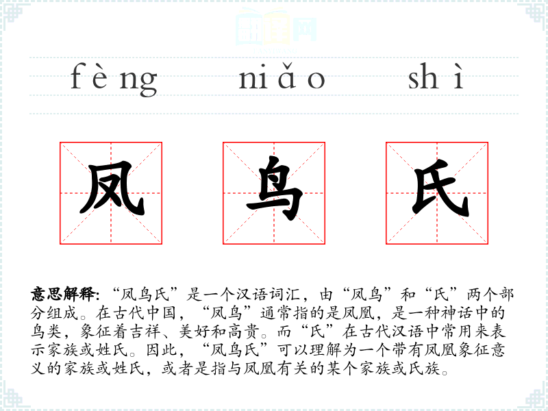 在**文化中,凤凰象征着吉祥、美丽和高贵,因此,“凤鸟氏”可能与皇族或贵族有关。在古代社会,这样的命名可能反映了家族的地位和荣誉。