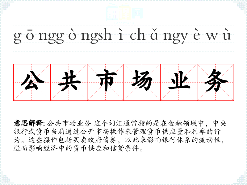 公共市场业务 这个词汇源自金融学和货币经济学,随着中央银行制度的发展而逐渐成为专业术语。它的使用和理解随着金融市场的复杂化而不断深化。