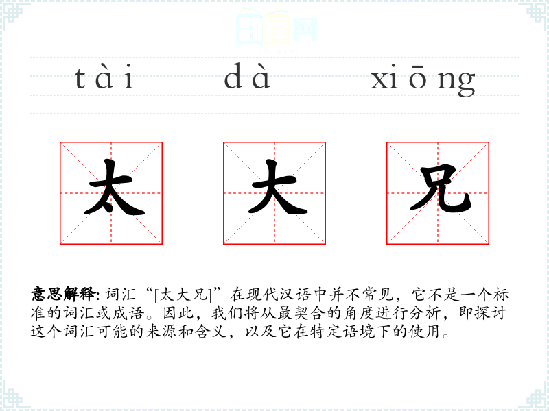 词汇“[太大兄]”在现代汉语中并不常见,它不是一个标准的词汇或成语。因此,我们将从最契合的角度进行分析,即探讨这个词汇可能的来源和含义,以及它在特定语境下的使用。