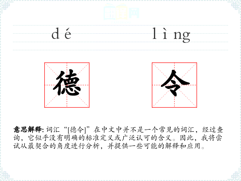 词汇“[德令]”在中文中并不是一个常见的词汇,经过查询,它似乎没有明确的标准定义或广泛认可的含义。因此,我将尝试从最契合的角度进行分析,并提供一些可能的解释和应用。