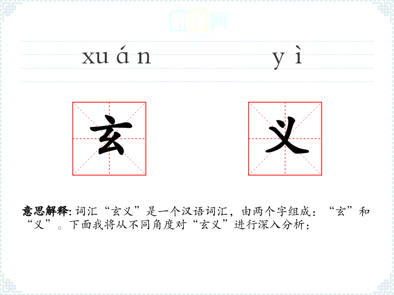 - 字面意思:“玄”通常指深奥、难以理解的事物,而“义”则指意义、道理。