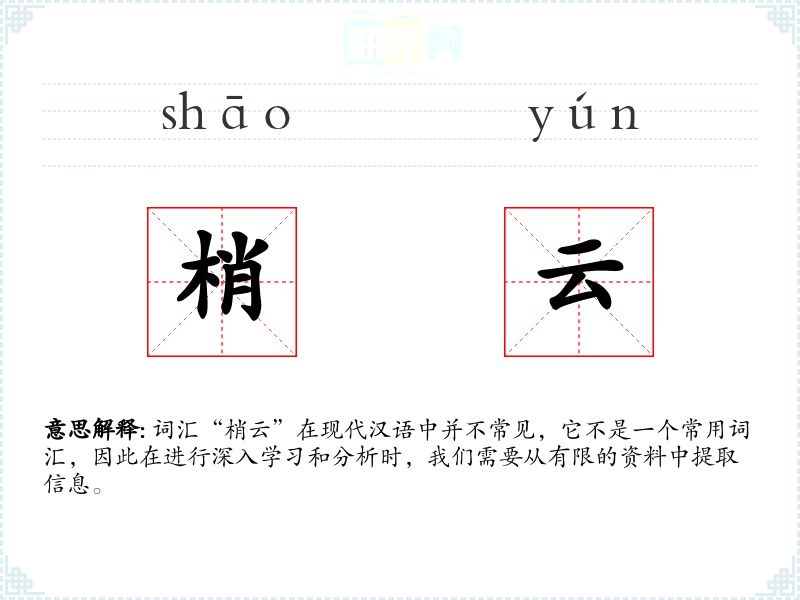词汇“梢云”在现代汉语中并不常见,它不是一个常用词汇,因此在进行深入学*和分析时,我们需要从有限的资料中提取信息。