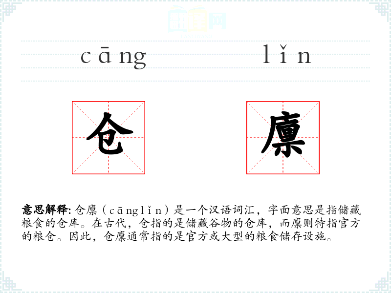 - 反义词:无(仓廪本身是储存的概念,没有直接的反义词)