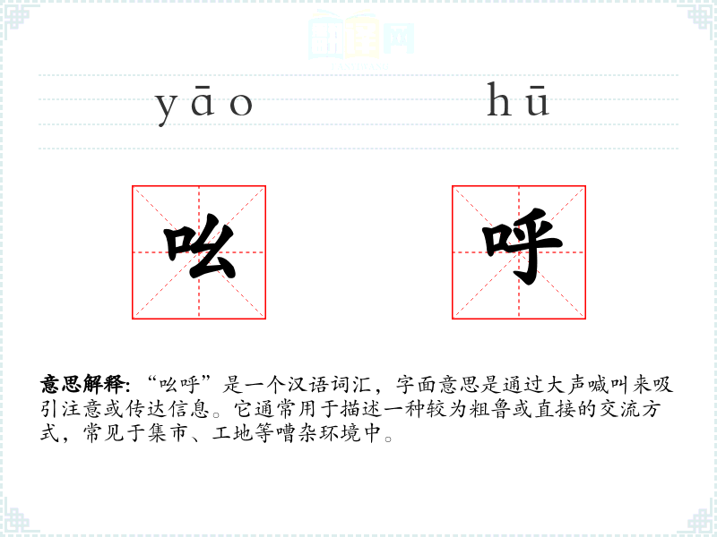 “吆呼”这个词汇虽然简单,但它承载了丰富的社会文化内涵,反映了特定环境下的交流方式。在语言学*和表达中,理解和运用这样的词汇能够更准确地传达情感和场景,丰富语言的表达力。