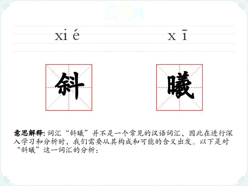 词汇“斜曦”并不是一个常见的汉语词汇,因此在进行深入学*和分析时,我们需要从其构成和可能的含义出发。以下是对“斜曦”这一词汇的分析: