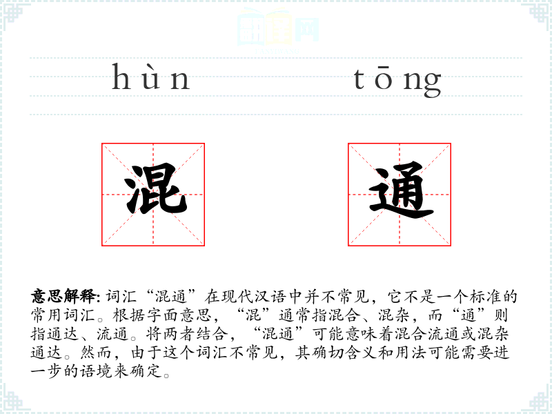由于“混通”不是一个常用词汇,其在不同语言或文化中的对应词汇及其使用情况不详。
