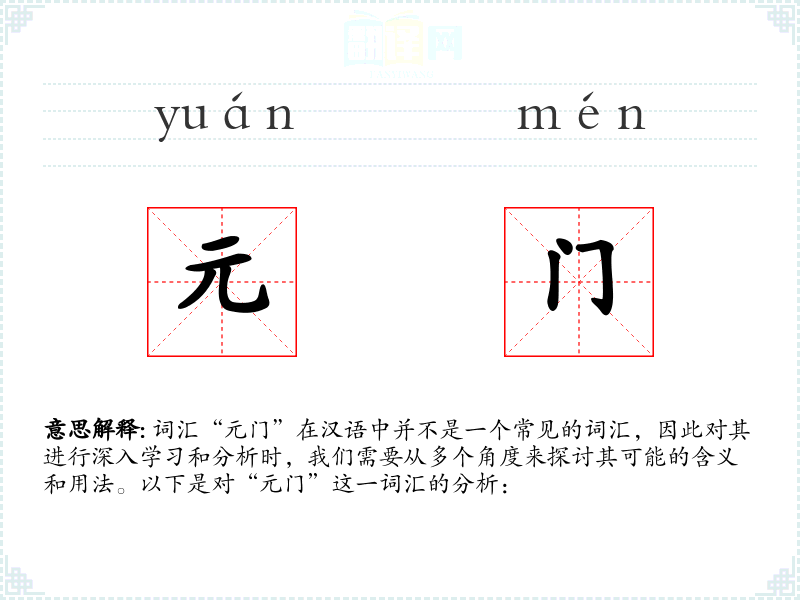 词汇“元门”在汉语中并不是一个常见的词汇,因此对其进行深入学习和分析时,我们需要从多个角度来探讨其可能的含义和用法。以下是对“元门”这一词汇的分析: