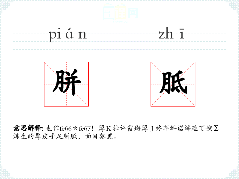 也作fe66*fe67!薄K壮评霞搿薄J终苹蚪诺滓虺て谀Σ炼生的厚皮
