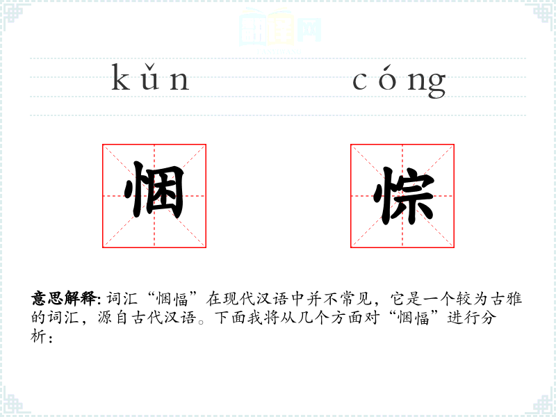 词汇“悃愊”在现代汉语中并不常见,它是一个较为古雅的词汇,源自古代汉语。下面我将从几个方面对“悃愊”进行分析: