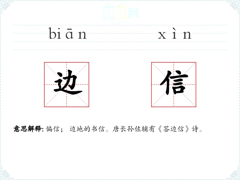 偏信; 边地的书信。唐长孙佐辅有《答边信》诗。
