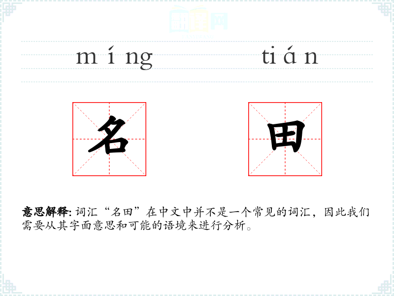词汇“名田”在中文中并不是一个常见的词汇,因此我们需要从其字面意思和可能的语境来进行分析。