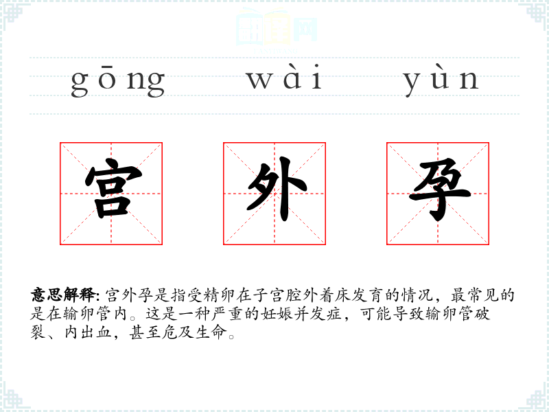 - 不同语言:在不同语言中,宫外孕的表达可能有所不同,但其基本含义和医学重要性是普遍的。