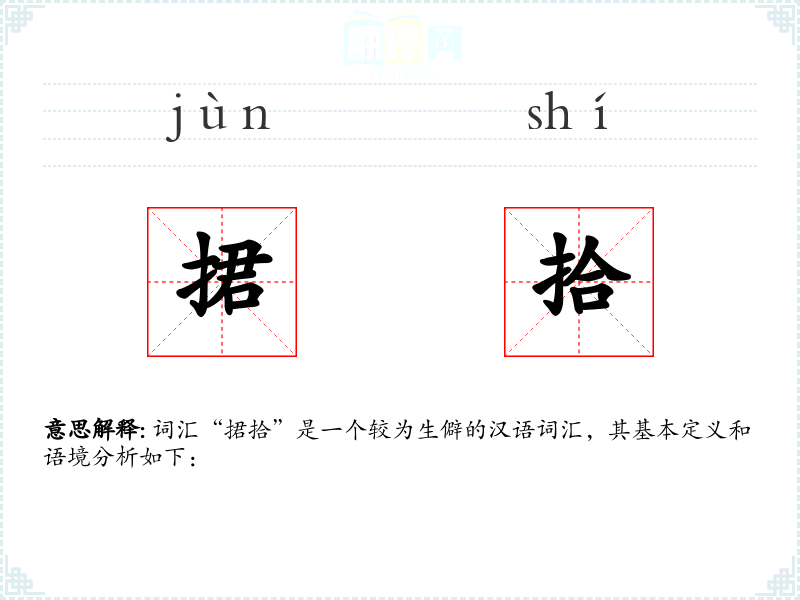词汇“捃拾”是一个较为生僻的汉语词汇,其基本定义和语境分析如下: