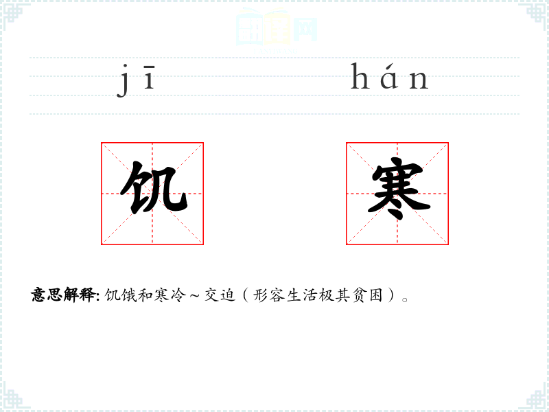饥饿和寒冷~交迫(形容生活极其贫困)。