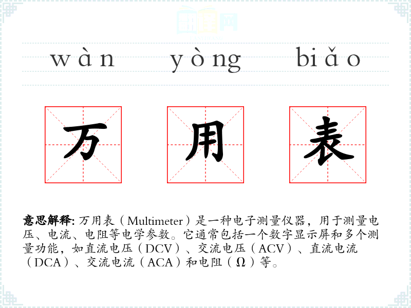 "万用表"的意思解释、万用表是什么意思由翻译网汉语词典查词提供。