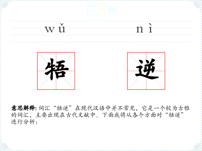 词汇“牾逆”在现代汉语中并不常见,它是一个较为古雅的词汇,主要出现在古代文献中。下面我将从各个方面对“牾逆”进行分析: