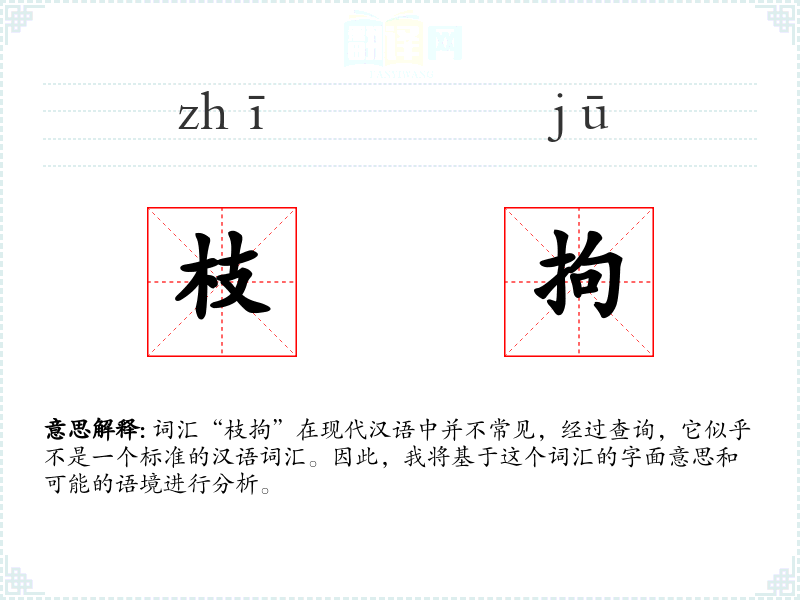 词汇“枝拘”在现代汉语中并不常见,经过查询,它似乎不是一个标准的汉语词汇。因此,我将基于这个词汇的字面意思和可能的语境进行分析。