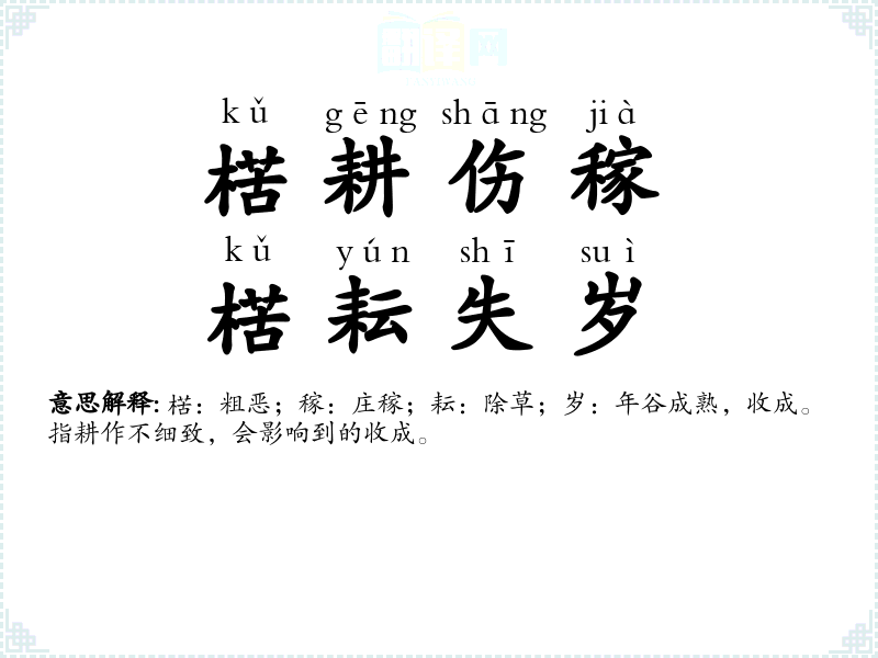楛:粗恶;稼:庄稼;耘:除草;岁:年谷成熟,收成。指耕作不细致,会影响到的收成。