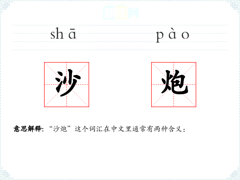 "沙炮"的意思解释、沙炮是什么意思由翻译网汉语词典查词提供。