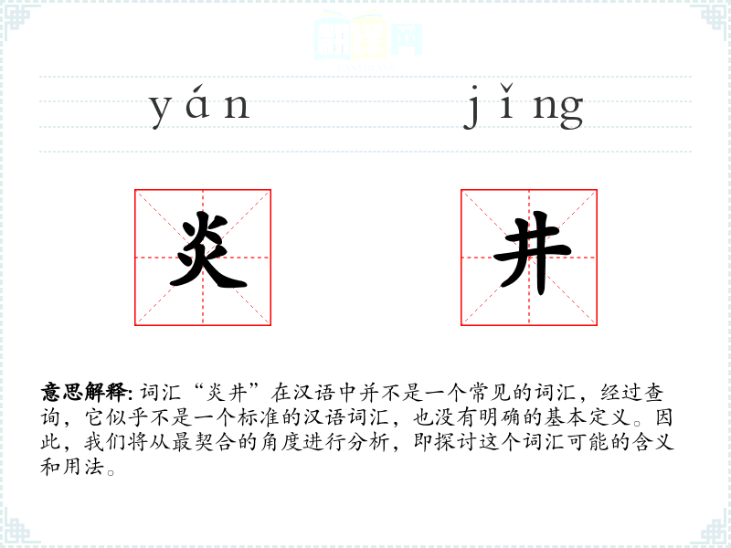 由于“炎井”不是一个标准词汇,我们可以尝试从字面意思来解释: