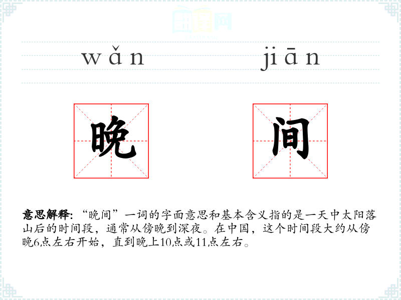 “晚间”一词的字面意思和基本含义指的是一天中太阳落山后的时间段,通常从傍晚到深夜。在*,这个时间段大约从傍晚点左右开始,直到晚上10点或11点左右。