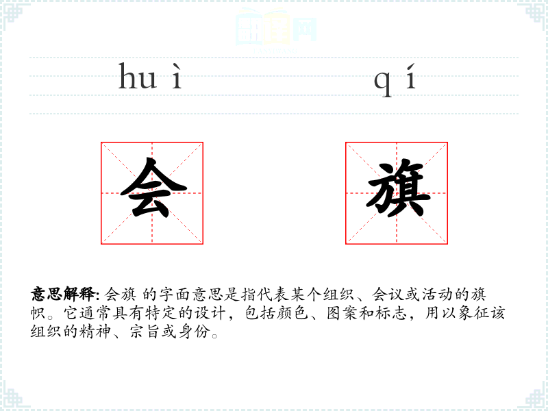 - 反义词:无(因为会旗是一个特定概念,没有直接的反义词)