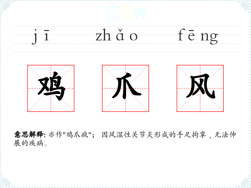 "鸡爪风"的意思解释、鸡爪风是什么意思由翻译网汉语词典查词提供。
