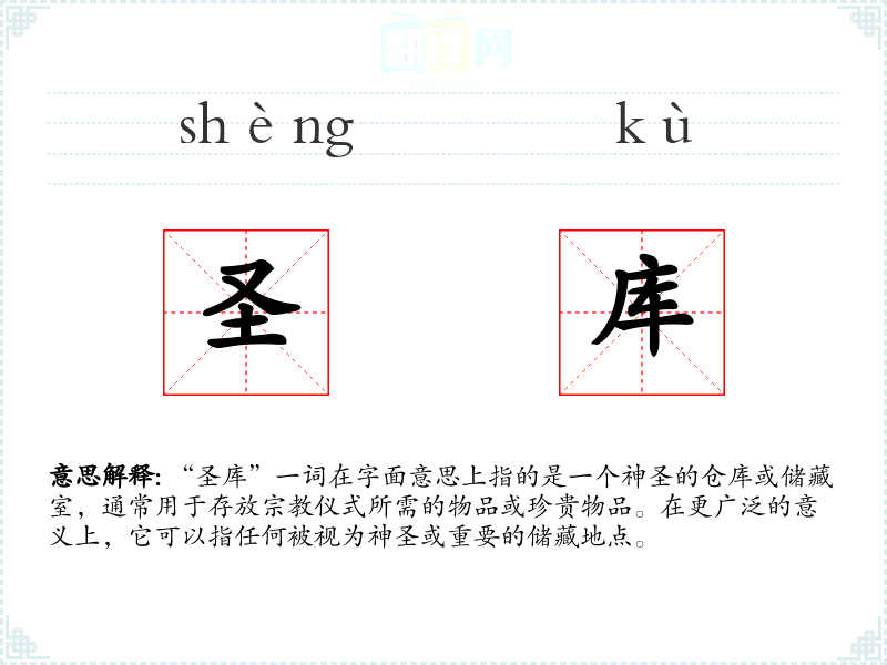 "圣库"的意思解释、圣库是什么意思由翻译网汉语词典查词提供。
