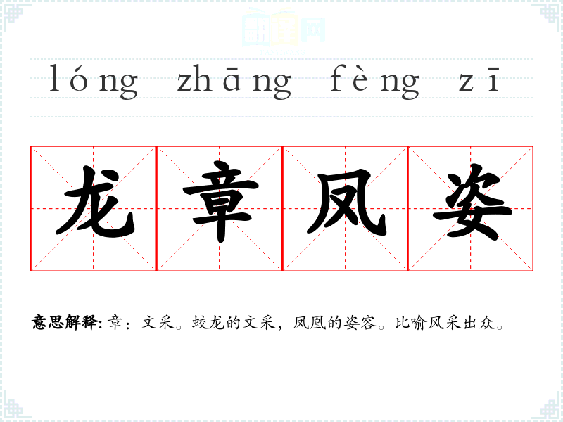 章:文采。蛟龙的文采,凤凰的姿容。比喻风采出众。