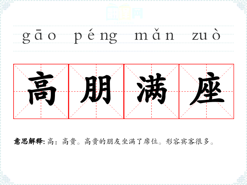 高:高贵。高贵的朋友坐满了席位。形容宾客很多。