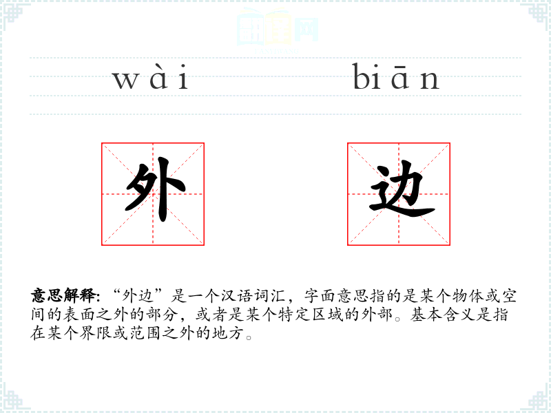 "外边"的意思解释、外边是什么意思由翻译网汉语词典查词提供。
