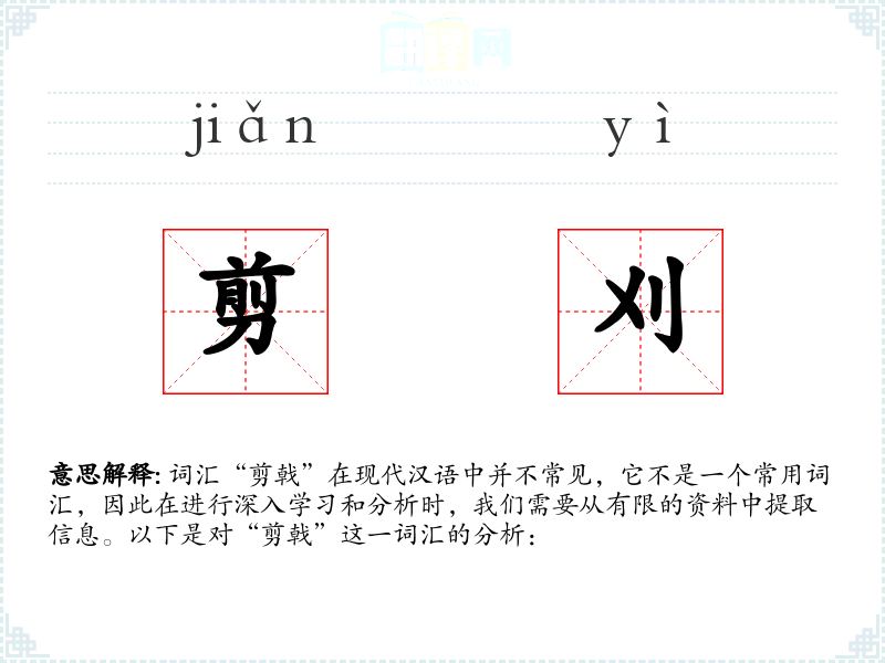词汇“剪戟”在现代汉语中并不常见,它不是一个常用词汇,因此在进行深入学*和分析时,我们需要从有限的资料中提取信息。以下是对“剪戟”这一词汇的分析: