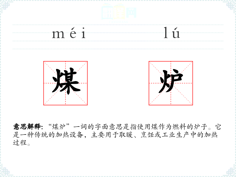 “煤炉”一词的字面意思是指使用煤作为燃料的炉子。它是一种传统的加热设备,主要用于取暖、烹饪或工业生产中的加热过程。