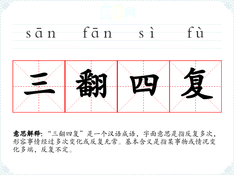 "三翻四复"的意思解释、三翻四复是什么意思由翻译网汉语词典查词提供。