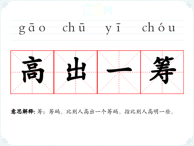 筹:筹码。比别人高出一个筹码。指比别人高明一些。