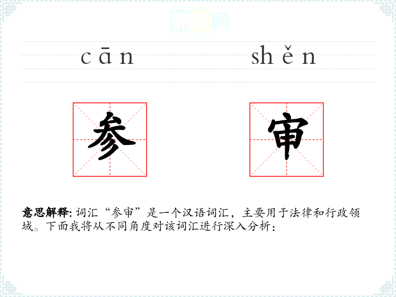 - 专业领域:在法律和行政专业领域,“参审”是一个常用词汇,用于描述审查和审理的过程。