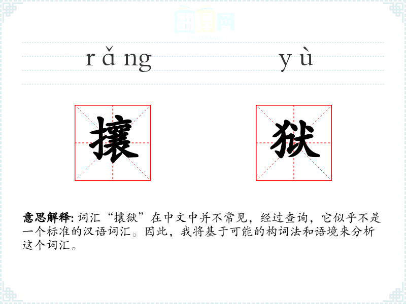 词汇“攘狱”在中文中并不常见,经过查询,它似乎不是一个标准的汉语词汇。因此,我将基于可能的构词法和语境来分析这个词汇。