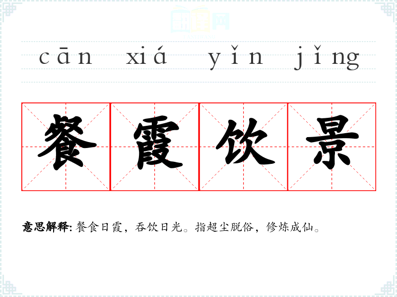 餐食日霞,吞饮日光。指超尘脱俗,修炼成仙。