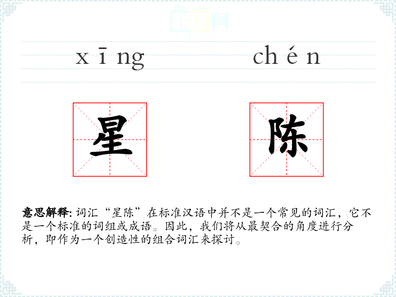 词汇“星陈”在标准汉语中并不是一个常见的词汇,它不是一个标准的词组或成语。因此,我们将从最契合的角度进行分析,即作为一个创造性的组合词汇来探讨。