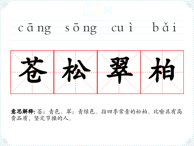 苍:青色。翠:青绿色。指四季常青的松柏。比喻具有高贵品质、坚定节操的人。