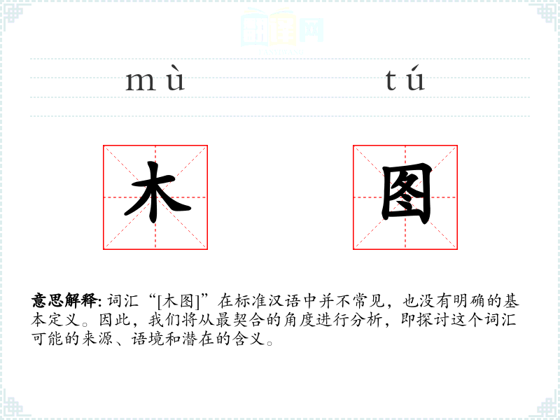 词汇“[木图]”在标准汉语中并不常见,也没有明确的基本定义。因此,我们将从最契合的角度进行分析,即探讨这个词汇可能的来源、语境和潜在的含义。