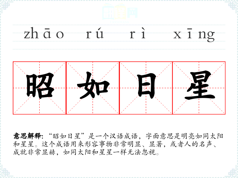 在文化中,太阳和星星象征着光明和希望,因此“昭如日星”这个成语也带有积极向上的文化内涵。在社会背景中,这个成语常用来赞扬那些对社会有重大贡献的人物或。