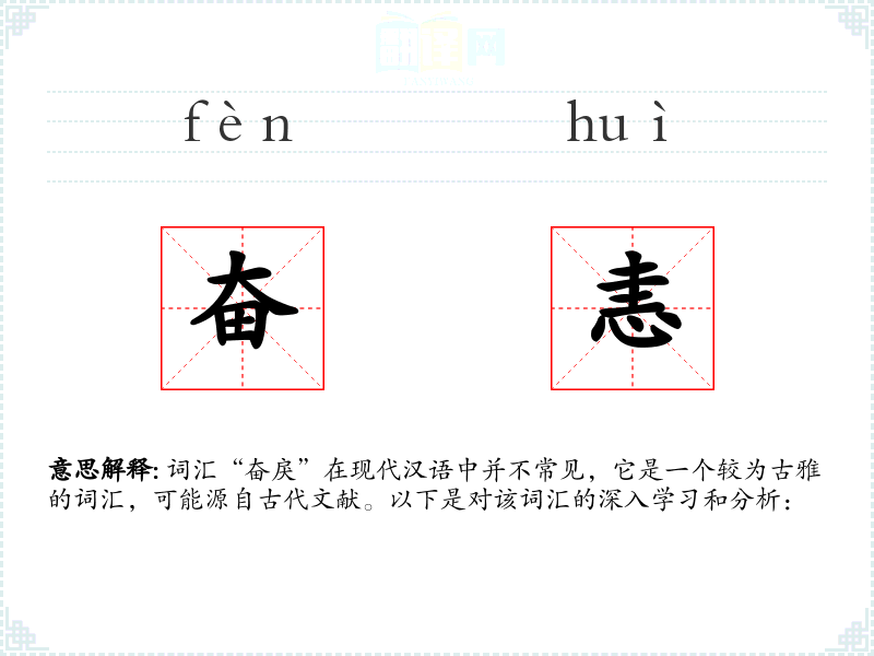词汇“奋戾”在现代汉语中并不常见,它是一个较为古雅的词汇,可能源自古代文献。以下是对该词汇的深入学*和分析: