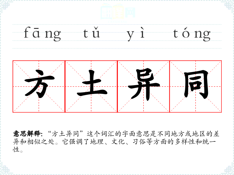 “方土”一词源自古代汉语,指地方或地区,“异同”则表示差异和相似。这个词汇在古代文献中已有使用,随着时间的推移,其含义和用法逐渐丰富和扩展。